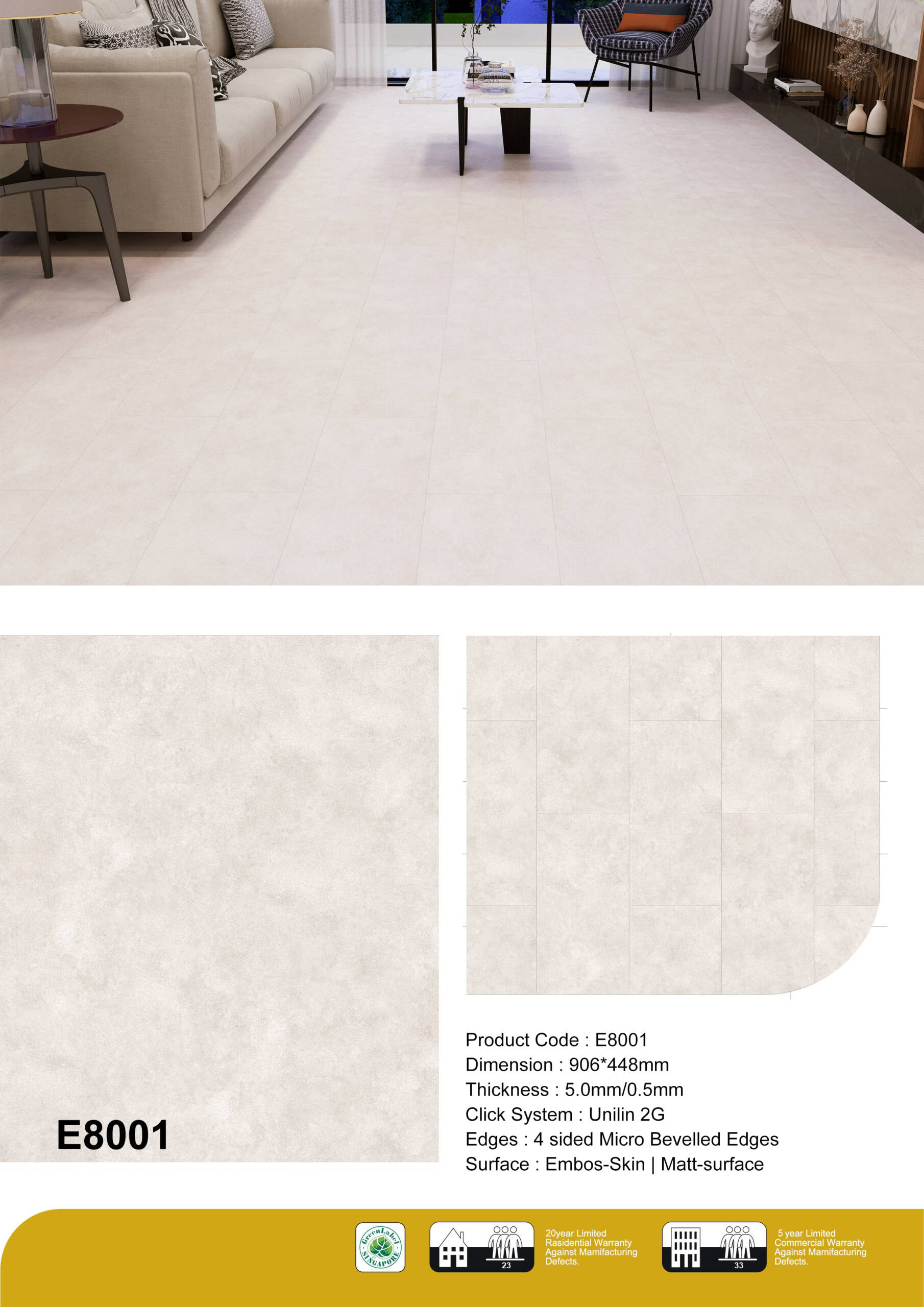Durable Construction – Built with a 0.5 mm wear layer for long-term performance in busy areas.