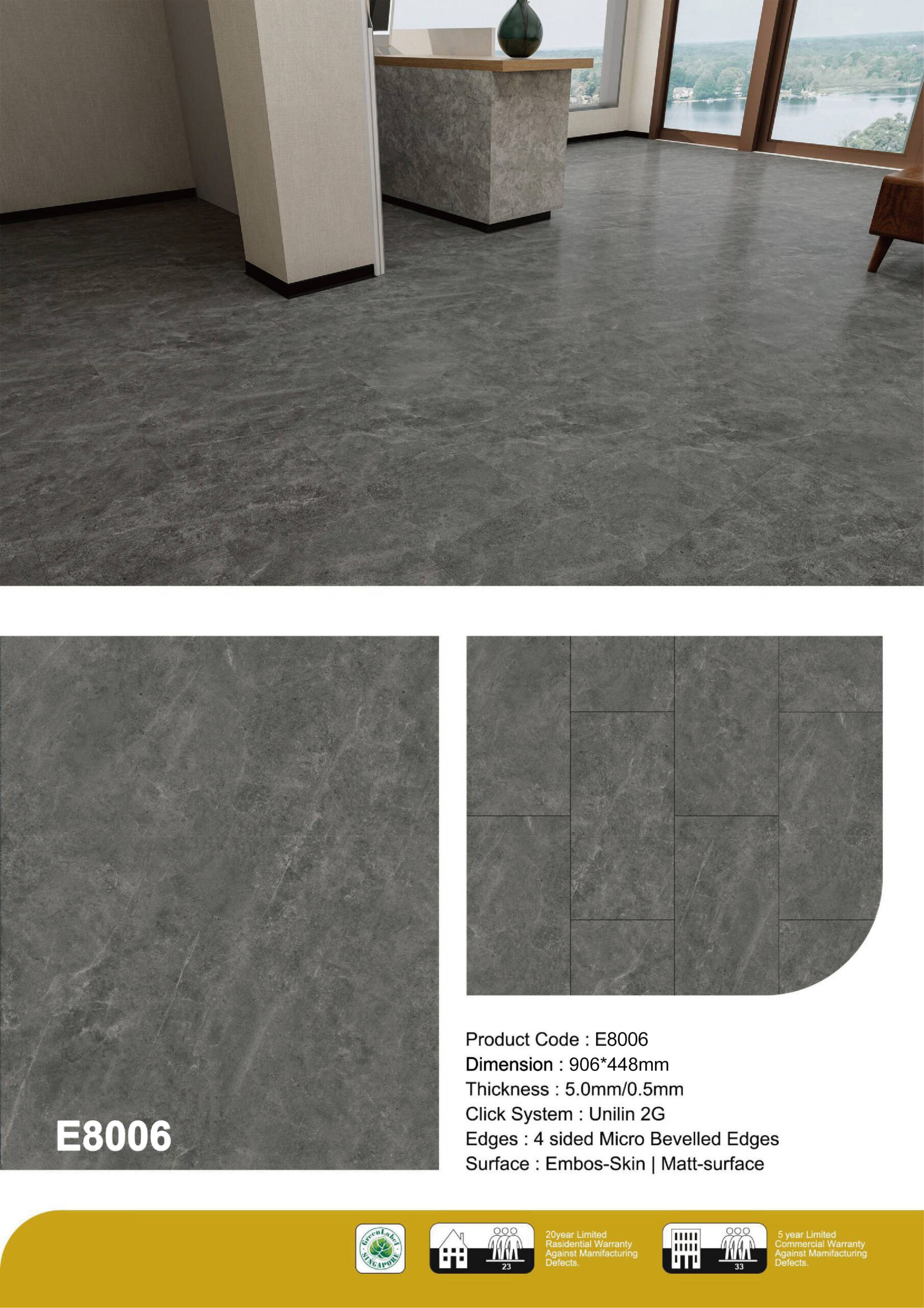Key Features of Micro Cement Vinyl Effect Flooring E8006: